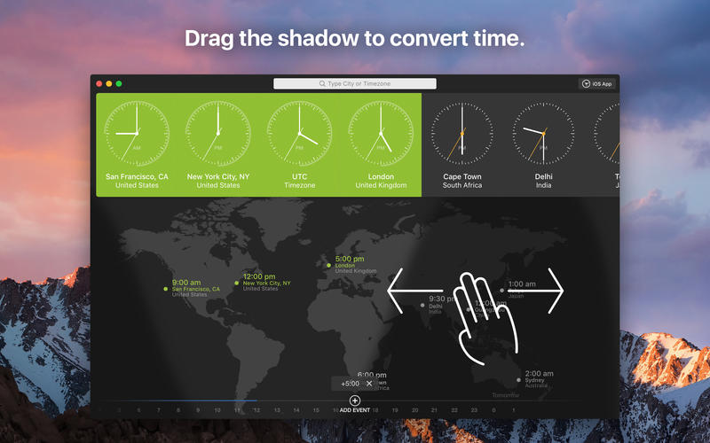 Программа не требует сложной настройки — достаточно указать нужные локации, и world clock начнёт отсчёт времени мгновенно.