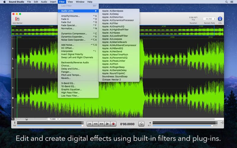 Sound Studio представляет собой полнофункциональную аудио-студию, в которой можно осуществлять запись живых инструментов, вокала, озвучивать презентации или архивировать аналоговые носители. Поддержка множества форматов, включая AIFF, WAVE, MPEG-4 AAC и Ogg Vorbis, делает её универсальным решением для любых задач. Программа активно используется для создания музыки, подкастов, аудиокниг и профессиональной озвучки.