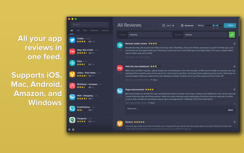 Использование программного обеспечения не требует глубоких технических знаний. После установки на macOS 10.9 и выше, разработчику необходимо подключить аккаунты магазинов, где размещено его приложение. Программа автоматически начнёт синхронизацию и выгрузку отзывов. Регулярное использование команды reviews позволяет отслеживать динамику восприятия продукта пользователями. Интерфейс интуитивно понятен, а данные можно фильтровать по дате, рейтингу, магазину или языку.