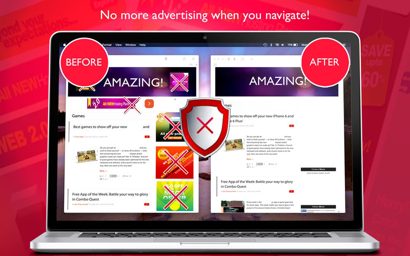 Block Advertising on internet 1.5 — приложение для macOS, блокирующее назойливую рекламу в браузере. Программа устраняет всплывающие окна, баннеры и тизеры, улучшая качество веб-серфинга. Защита от рекламы помогает сэкономить трафик, время и нервы.