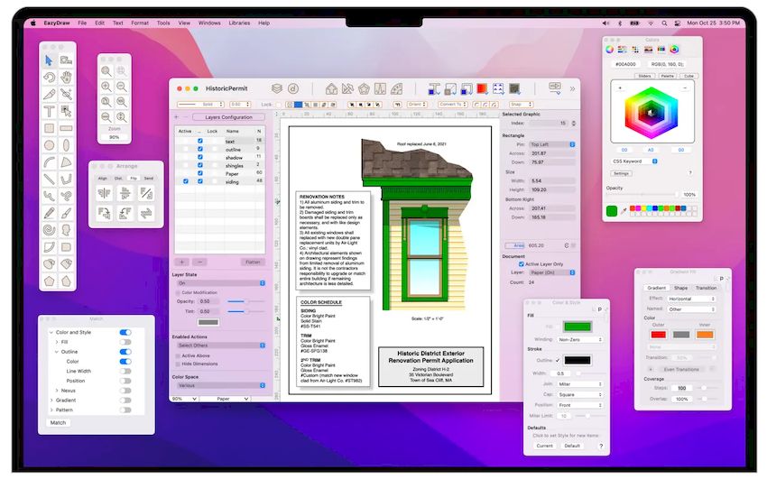 EazyDraw 11.10.0 — это инструмент, призванный упростить процесс создания графических материалов на платформе macOS. Разработчики позиционируют его как средство для лёгкого и эффективного рисования с минимальным временем освоения. Интерфейс интуитивно понятен, а функционал охватывает как базовые, так и продвинутые задачи: от наброска иллюстраций до подготовки технической документации. Благодаря поддержке различных графических стандартов, программа может использоваться в образовательных, инженерных и дизайнерских целях.