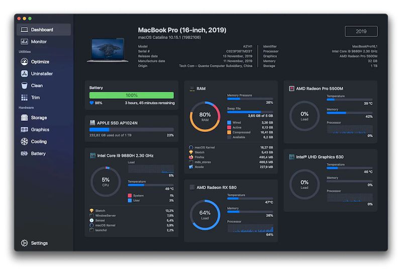 Программа Sensei сочетает в себе инструменты диагностики, оптимизации и обслуживания macOS. Она предлагает пользователям комплексное решение для отслеживания производительности, анализа состояния оборудования и улучшения общей отзывчивости системы. Приложение работает стабильно на macOS 10.15 и выше, имеет компактный размер — всего 34 МБ, что делает его лёгким в установке и использовании. Sensei не требует глубоких технических знаний, так как все данные представлены в понятной форме.