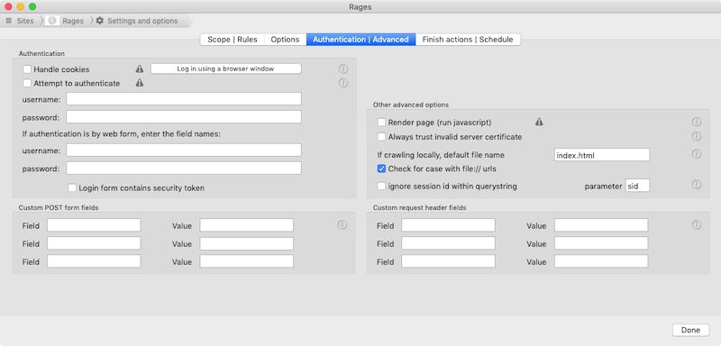 - Поддержка сканирования защищённых страниц с авторизацией через логин и пароль