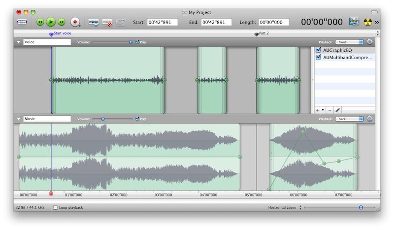 - Поддержка форматов AIFF, WAV, MP3, M4A, FLAC, OGG, AU, AC3, M4R и других