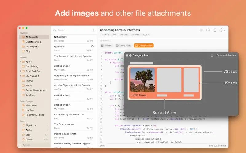SnippetsLab 2.6 — это приложение для macOS, предназначенное для эффективного хранения и управления фрагментами кода. Программа помогает разработчикам систематизировать полезные сниппеты, быстро находить нужные конструкции и повторно использовать их в проектах. Удобный интерфейс и поддержка множества языков программирования делают инструмент ценным помощником в повседневной работе.