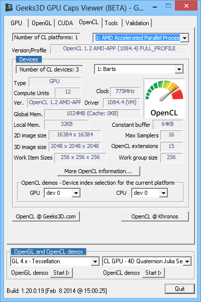 С помощью viewer легко выявить узкие места в графической подсистеме и проверить совместимость с программным обеспечением, использующим OpenGL или OpenCL.