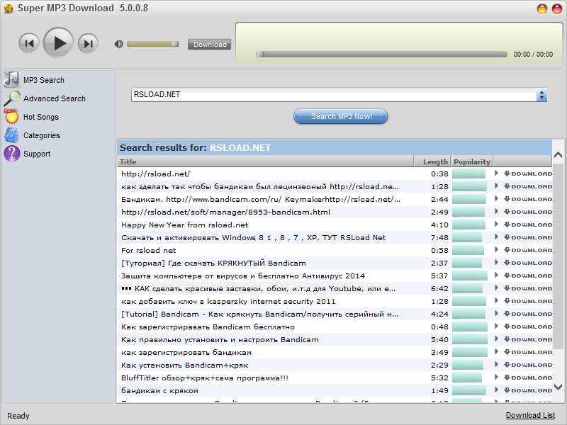 Работа с Super MP3 Download
