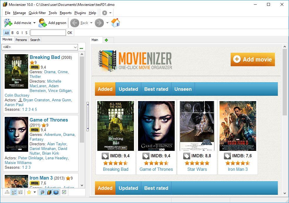 Movienizer позволяет превратить хаотичное собрание фильмов в структурированную медиатеку с полной информацией и иллюстрациями.