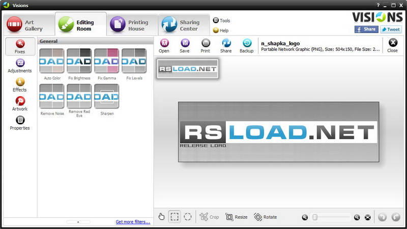 - Встроенный редактор изображений с базовыми и расширенными инструментами
