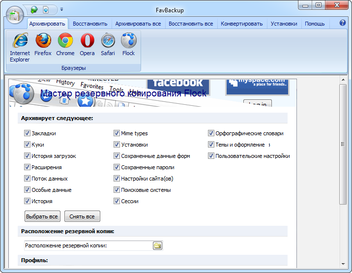 Работа с FavBackup