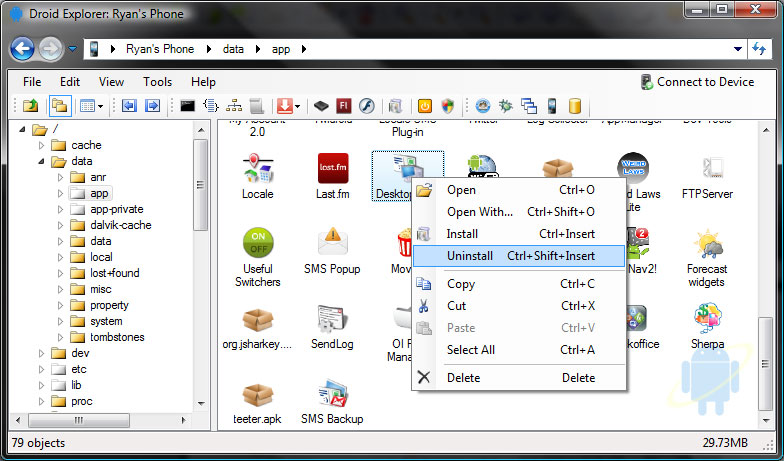 Работа с Droid Explorer