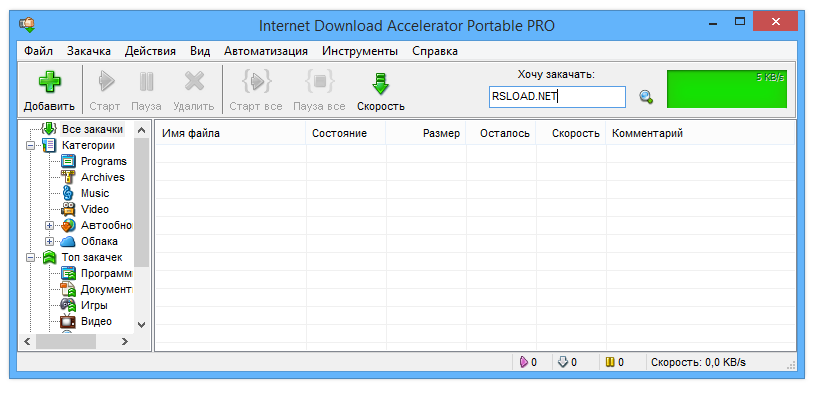 Работа с Internet Download Accelerator