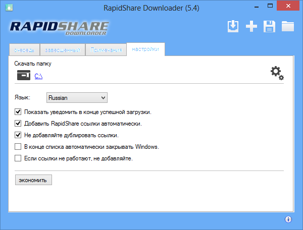 Работа с RapidShare Downloader