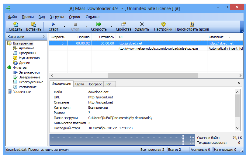 Mass Downloader разработан компанией MetaProducts Corporation и представляет собой эффективный инструмент для управления процессом скачивания. В основе программы лежит архитектура, схожая с решением Offline Browser, однако Mass Downloader ориентирован на загрузку конкретных файлов, а не целых веб-сайтов. Приложение поддерживает работу с HTTP, HTTPS, FTP и другими распространенными протоколами передачи данных. Благодаря встроенной системе анализа ссылок, программа способна автоматически перехватывать потоковые данные, в том числе видеофайлы, что делает её универсальным решением для массового сохранения контента из сети. Русский интерфейс обеспечивает комфортное использование даже для неопытных пользователей.