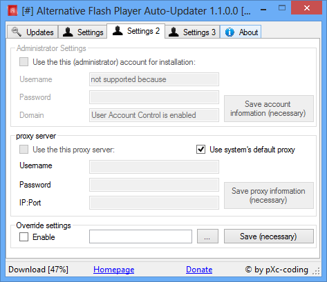 Работа с Alternative Flash Player Auto-Updater