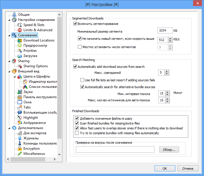 - Высокая скорость загрузки за счёт сегментирования файлов