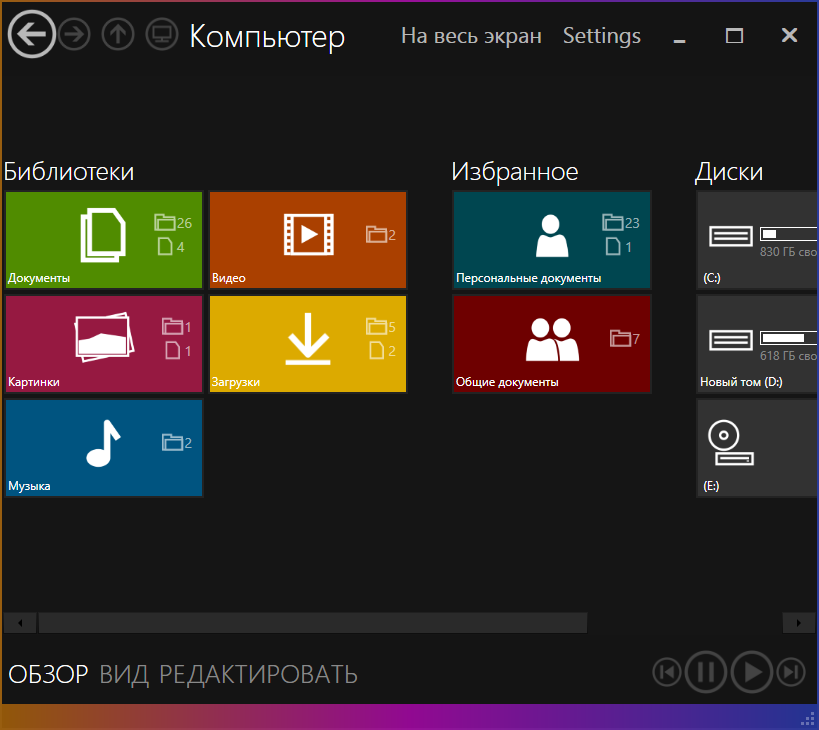 - Интерфейс с элементами магазинного дизайна Windows 8 и 10