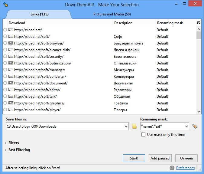 Работа с DownThemAll
