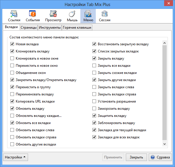 Работа с Tab Mix Plus