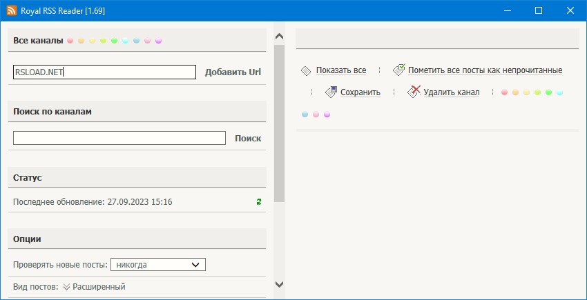 Работа с Royal RSS Reader
