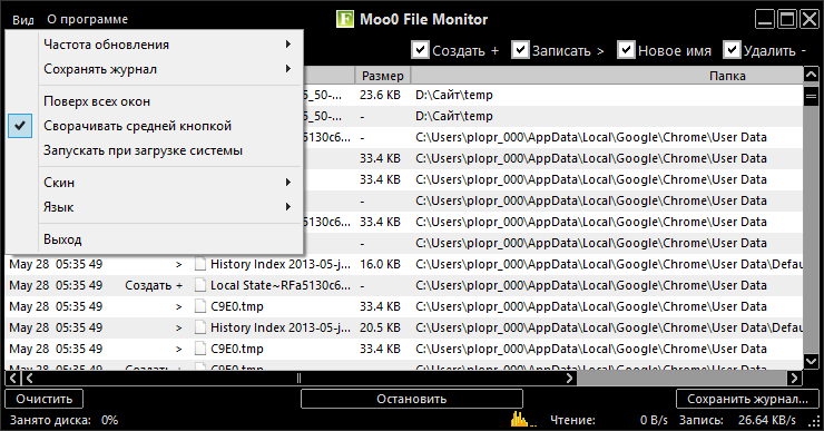 Работа с Moo0 FileMonitor