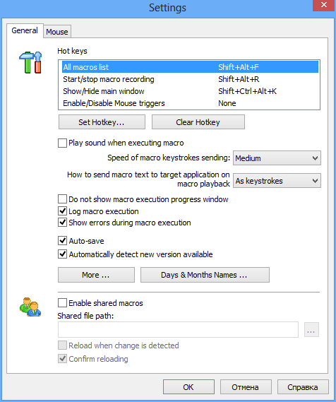 - Гибкая система назначения макросов на действия мыши