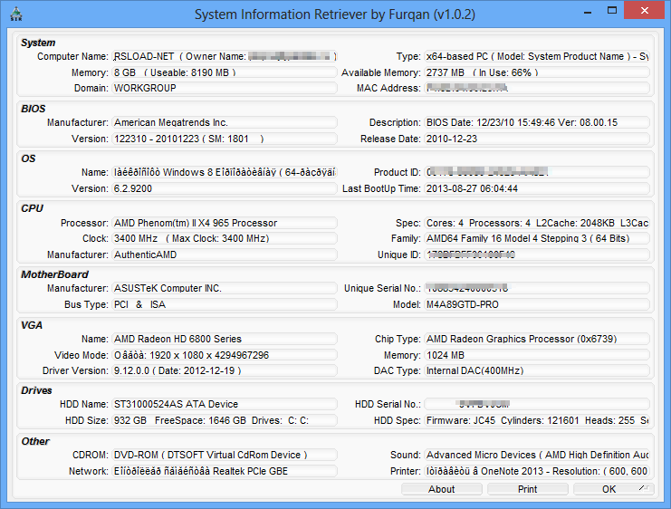 System Information Retriever 1.0.4 разработана для пользователей, которым необходимо быстро и точно узнать конфигурацию своего компьютера без необходимости использовать сложные диагностические инструменты. Приложение мгновенно анализирует систему и выводит детальные сведения о каждом аппаратном компоненте, включая модель, производителя, объем памяти, частоту, версии микропрограмм и другую важную информацию. Утилита особенно полезна при модернизации компьютера, диагностике неисправностей или подборе драйверов. Благодаря своей компактности, программа может быть запущена с флешки, что делает её незаменимой в арсенале системного администратора или технического специалиста. Скачать System Information Retriever можно легко, поскольку она распространяется бесплатно и не требует сложной настройки после запуска.