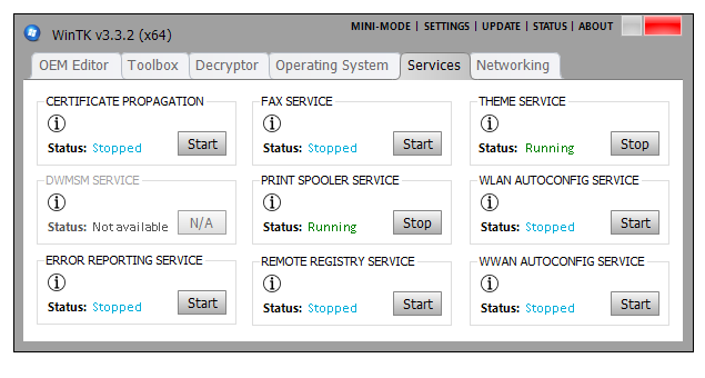 WinTK v3.3.2 — бесплатная портативная утилита для диагностики системы, просмотра информации о ключах Windows и Office, а также для настройки различных параметров операционной системы. Программа работает без установки, поддерживает ОС от Vista до 8.1 и предоставляет широкий набор инструментов администратора, включая резервное копирование OEM-информации и управление системными ресурсами.