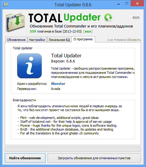 Работа с Total Updater