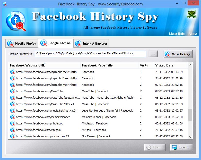 - Программа позволяет просматривать историю посещений Facebook из нескольких браузеров одновременно.