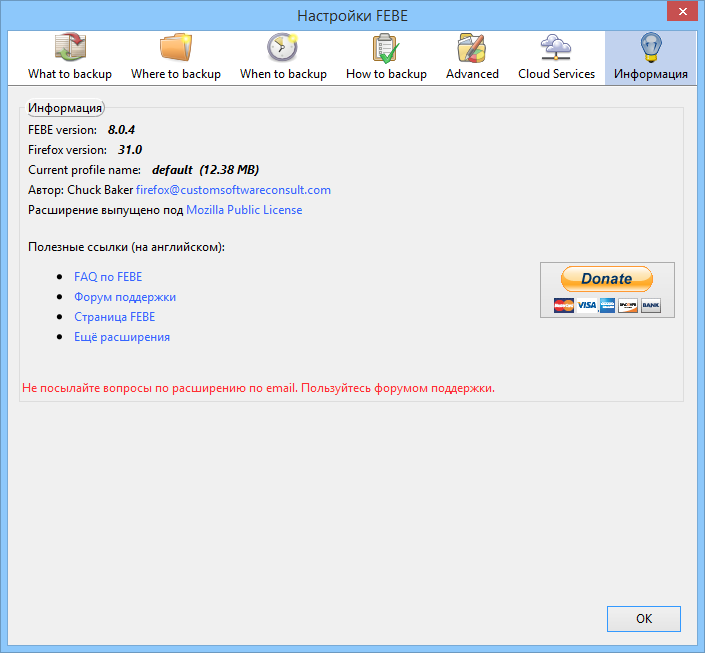 FEBE 8.9.2 — расширение для Mozilla Firefox, предназначенное для создания резервных копий настроек браузера, включая закладки, пароли, куки, историю и установленные дополнения. Программа позволяет автоматизировать процесс резервного копирования и хранить данные в облаке или на локальном диске. Особенно полезна при переустановке системы или миграции на другой компьютер.