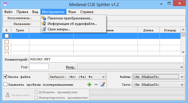 - Medieval CUE Splitter поддерживает автоматическое заполнение тегов, включая информацию об альбоме, исполнителе и названиях композиций.