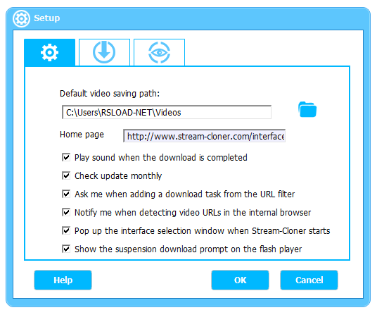 - Настройка пути сохранения и качества выходного потока