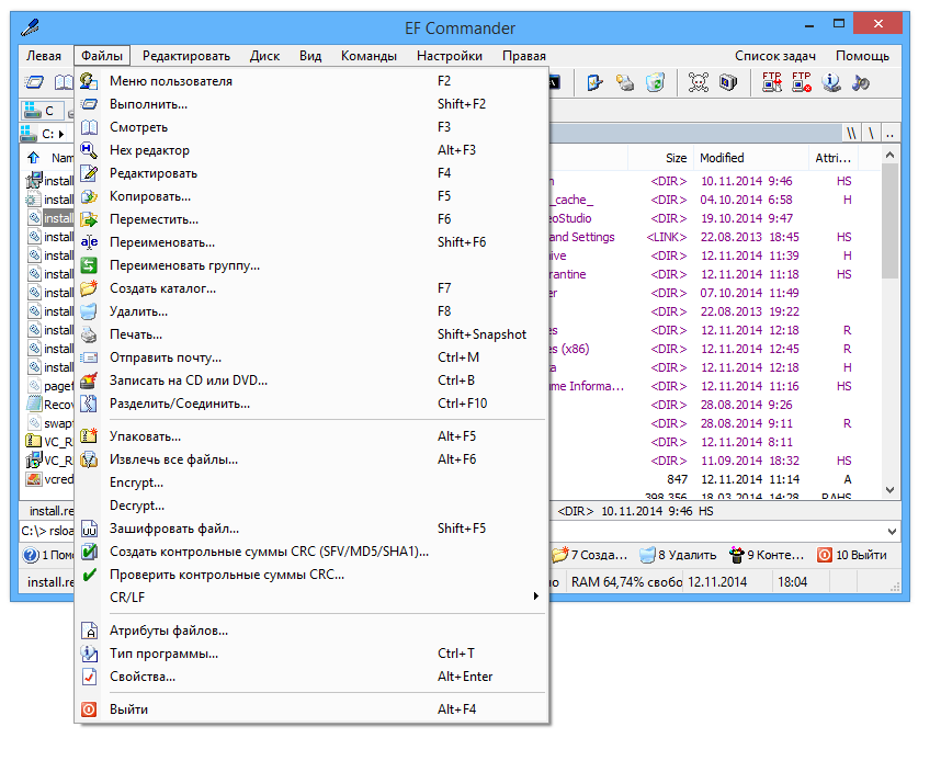 - Расширяемость за счёт подключения внешних приложений и модулей делает ef commander гибким инструментом.