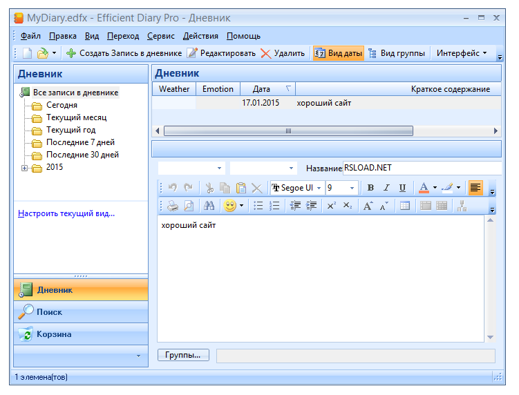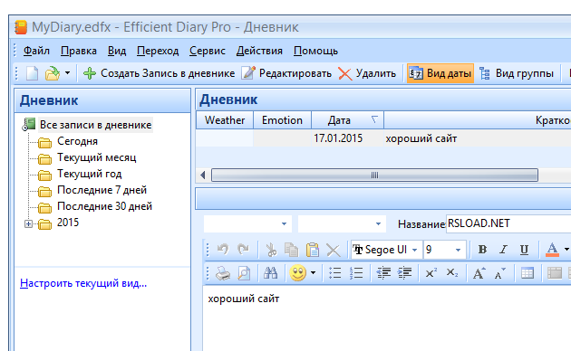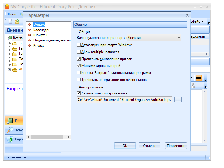 Работа с Efficient Diary