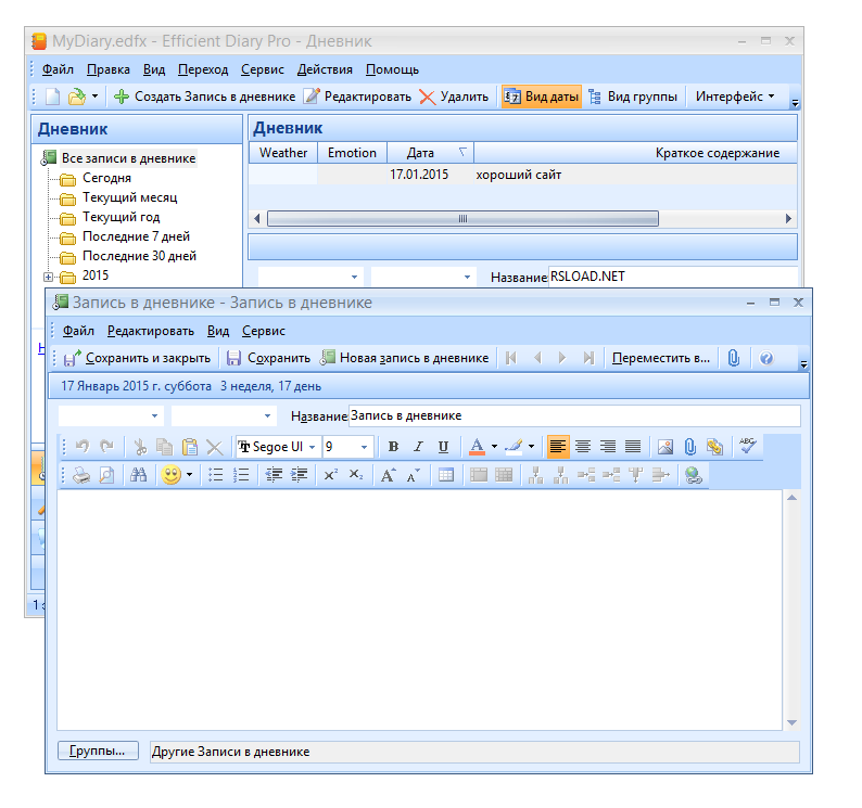 Efficient Diary Pro 5.60 Build 556 — это удобное и функциональное приложение для ведения электронного дневника, сочетающее простоту интерфейса с мощными инструментами редактирования, поиска и защиты данных. Программа поддерживает парольную защиту, импорт и экспорт записей, а также интеграцию мультимедийных элементов. С ее помощью пользователи могут систематизировать мысли, события и личные заметки в удобной цифровой форме.