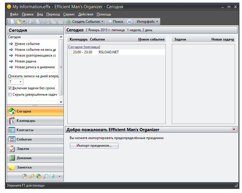 Работа с Efficient Man’s Organizer