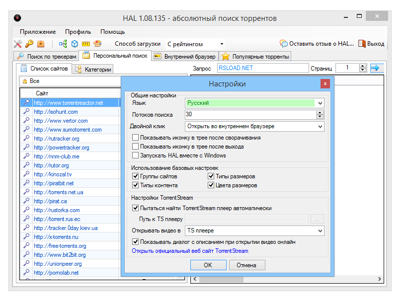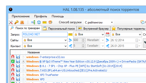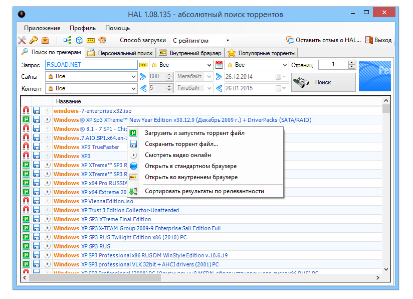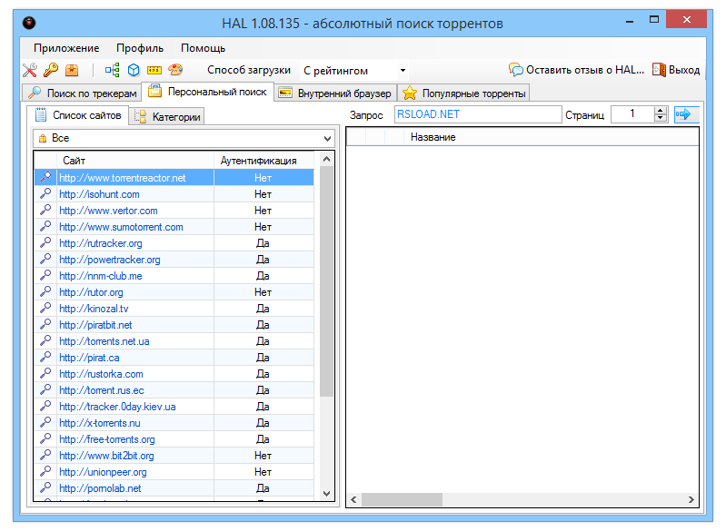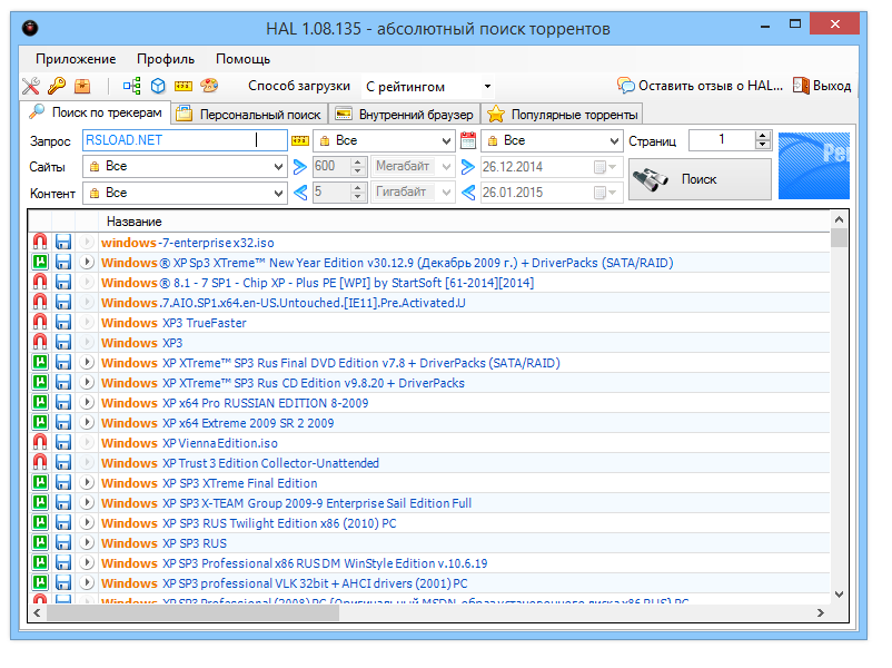 HAL — это компактный и эффективный поисковик торрентов, позволяющий находить раздачи на десятках русских и зарубежных трекеров, включая tfile.me и rutracker.org. Программа поддерживает авторизацию, встроенный браузер для просмотра описаний и работу с магнет-ссылками без необходимости логина. Подходит для пользователей, которые ценят скорость, удобство и отсутствие лишних элементов.