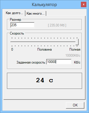 - Встроенный калькулятор времени загрузки файлов