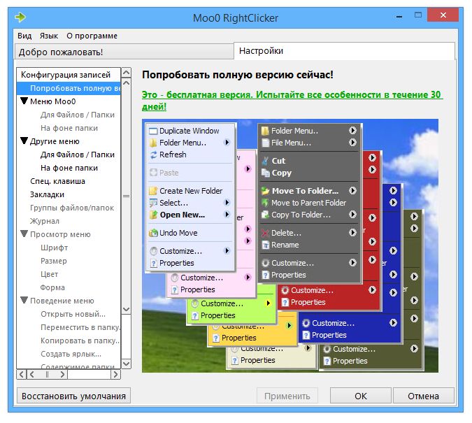 - Гибкие настройки интерфейса и поведения меню