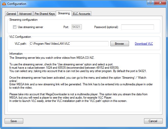 Для работы с видео через MegaDownloader требуется установленный VLC плеер — без него функция просмотра не будет доступна.