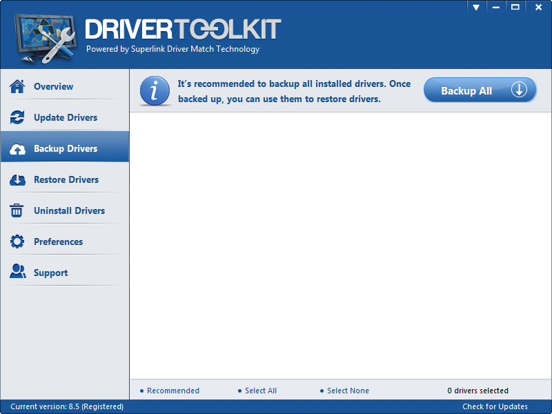 - Возможность резервного копирования установленных драйверов перед обновлением