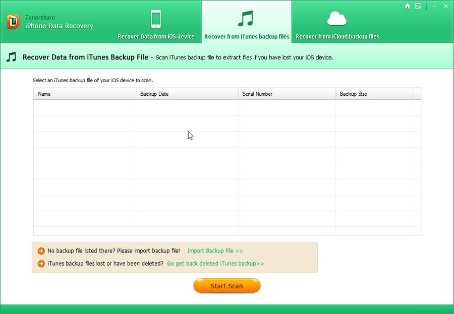 Работа с Tenorshare iPhone Data Recovery