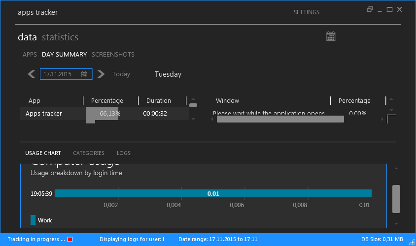 apps tracker — это легковесное приложение, разработанное для мониторинга поведения пользователя на ПК. Оно фиксирует время, проведённое в различных программах, формируя удобные отчёты и графики активности. Например, можно точно узнать, сколько времени было потрачено на браузер, текстовый редактор или почтовый клиент за день. Приложение работает фоново, экономя ресурсы системы, и при этом собирает детальную информацию о работе других приложений.
