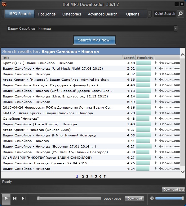Hot MP3 Downloader 3.6.3.8 — удобная программа для поиска, прослушивания и скачивания музыки из интернета. Приложение предлагает доступ к обширной музыкальной базе, простой интерфейс и настройки качества аудиофайлов. С её помощью пользователи могут быстро находить любимые композиции по названию, исполнителю или жанру.