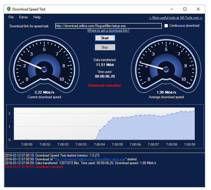 Пользоваться Download Speed Test очень просто: после запуска приложение открывается в одном окне, где присутствует поле для ввода ссылки и кнопка старта. Пользователь может скопировать URL любого скачиваемого файла — например, образ диска, обновление или архив, — вставить его в поле и нажать «Start». Сразу после этого начинается process of download test, в ходе которого на экране отображается текущая скорость, объём полученных данных и прогресс загрузки. По завершении пользователь может интерпретировать результаты, изучив график, который наглядно отражает колебания скорости. Программа поддерживает повторные замеры и не ограничивает количество тестов.