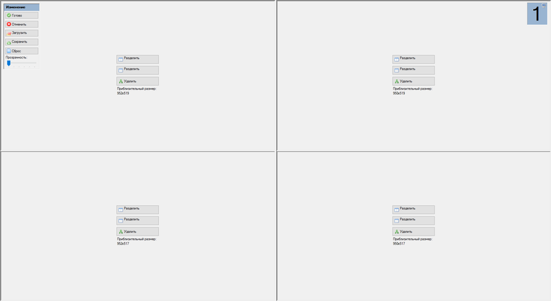 - Гибкая настройка деления экрана: пользователь может создавать любые конфигурации зон, включая асимметричные.
