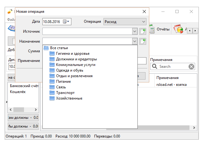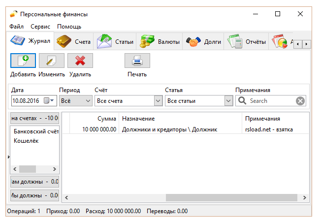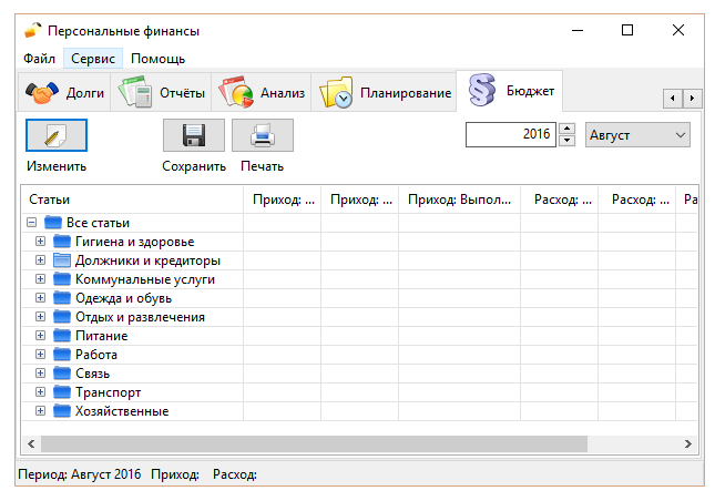 - Учёт доходов, расходов, кредитов и долгов