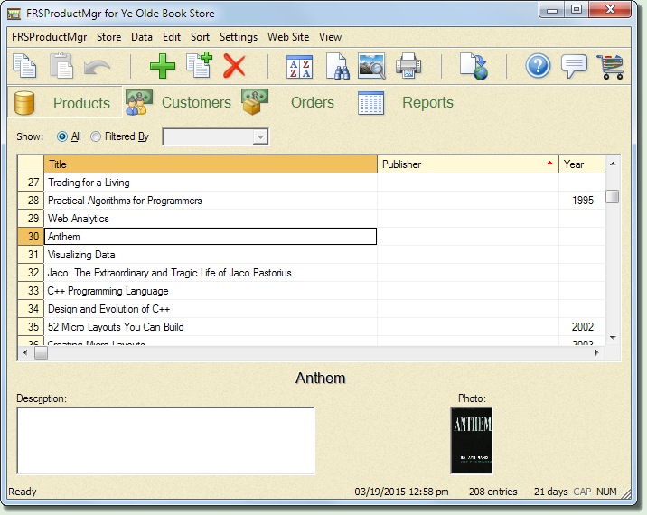 FRSProductMgr разработана компанией Fourth Ray Software как средство для оптимизации процесса размещения товаров в цифровом пространстве. Программное обеспечение позволяет структурировать данные о продуктах, включая название, описание, год выпуска, особенности и визуальные материалы. Интерфейс отличается простотой, что даёт возможность быстро заполнять карточки товаров, не изучая сложные настройки. Каждый созданный объект можно редактировать, дополнять информацией и использовать многократно при необходимости.
