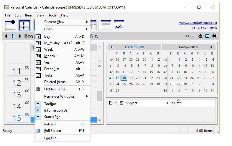 Calendarscope 12.5.2.3 — это универсальный календарный планировщик с поддержкой портативного режима, предназначенный для эффективного управления задачами, встречами, отпусками и важными личными событиями. Программа сочетает в себе интуитивный интерфейс, гибкие настройки отображения и расширенные функции синхронизации. Благодаря поддержке повторяющихся событий, цветового кодирования и экспорта данных, она подходит как для личного, так и для профессионального использования.